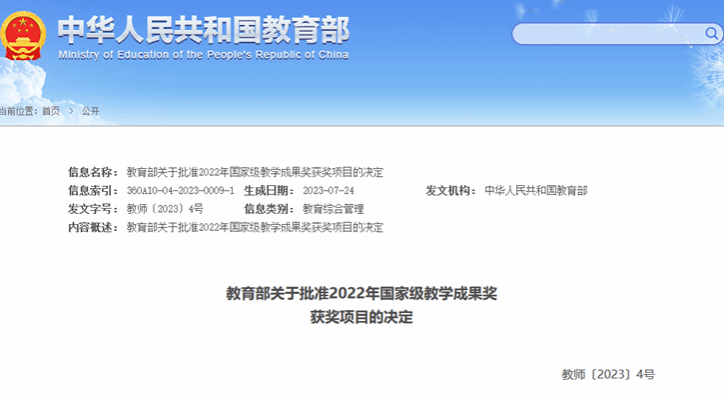 國家級教學(xué)成果獎每四年評選一次,是高等教育教學(xué)領(lǐng)域的最高獎項,是彰顯學(xué)校教育教學(xué)水平的核心指標。本次評選競爭激烈,共評選出高等教育(本科)教學(xué)成果獎572項,其中特等獎2項、一等獎70項、二等獎500項。本次獲獎是學(xué)校加強頂層設(shè)計、提高綜合管理水平、提升人才培養(yǎng)質(zhì)量、服務(wù)區(qū)域高精尖產(chǎn)業(yè)發(fā)展的一次集中體現(xiàn),亦是我校推進教育教學(xué)改革、優(yōu)化專業(yè)建設(shè)、創(chuàng)新人才培養(yǎng)等方面取得的階段性、實用性、高質(zhì)量、創(chuàng)新性的成果。