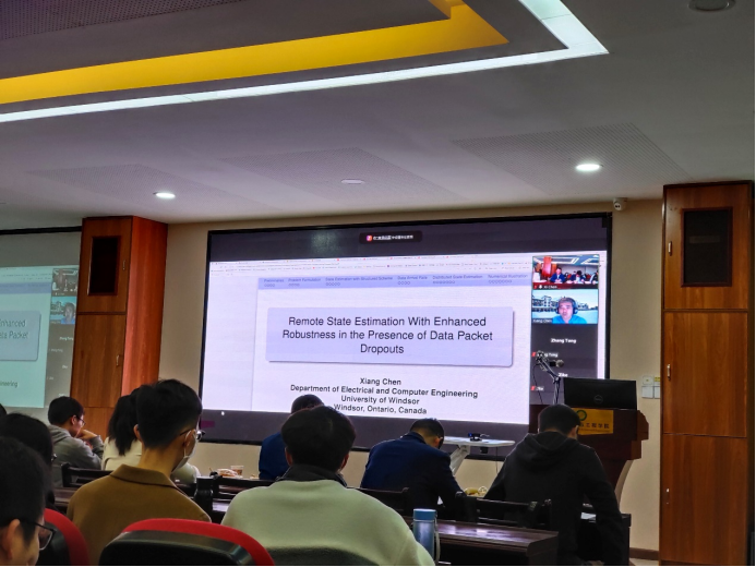 IEEE/ASME Transactions on Mechatronics主編委,SIAM Journal on Control and Optimization副編委,International Journal of Intelligent Robotics and Applications, Control Theory and Technology (English Version), Unmanned Systems副編委,溫莎大學電氣與計算機工程系陳翔教授做題為“Remote State Estimation with Enhanced Robustness in the Presence of Data Packet Dropouts”的報告。報告介紹了一種新的由殘差信號驅(qū)動的濾波器,用于具有有界功率干擾和高斯白噪聲的離散時間系統(tǒng)。