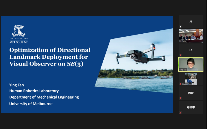 澳大利亞工程協(xié)會會員,澳大利亞墨爾本大學機械電子工程系談瑛教授,做題為“Optimization of Directional Landmark Deployment for Visual Observer on SE(3)”的報告。報告介紹了一種優(yōu)化方法,用于在 3-D 任務空間中的給定區(qū)域內(nèi)對給定數(shù)量的定向地標(位置和姿勢)進行新穎部署。