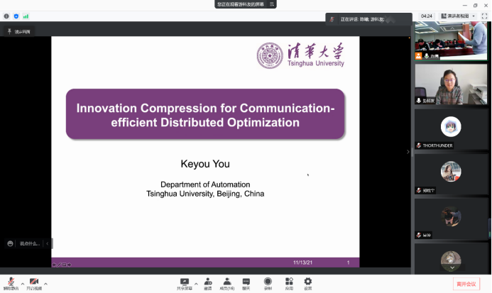 Transactions on Control of Network Systems、IEEE Transactions on Cybernetics、Systems & Control Letters、IEEE Control System Letters 等國際期刊副編委,清華大學自動化系游科友副教授做題為“Innovation Compression for Communication-efficient Distributed Optimization with Linear Convergence”的報告。報告介紹了一種通信高效的線性收斂分布式(COLD)算法來解決強凸優(yōu)化問題。