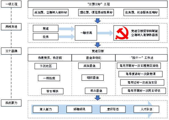 1.聚力育人能力建設(shè)。支部把課程思政作為基層組織建設(shè)的重要內(nèi)容,工作有計(jì)劃、有部署、有落實(shí)。支部黨員熊凌、蘇茜老師參加學(xué)校課程思政教學(xué)比賽分獲二等獎(jiǎng)、三等獎(jiǎng)。支部要求黨員教師必須擔(dān)任班主任工作,注重學(xué)生思想教育與解決實(shí)際需求相結(jié)合。支部把“教師思政”落實(shí)到每一位黨員教師身上,把“教師思政”作為年終評(píng)議黨員的重要內(nèi)容。支部黨員程磊老師因研究生培養(yǎng)工作突出獲得學(xué)校首個(gè)“杰出指導(dǎo)教師獎(jiǎng)”。