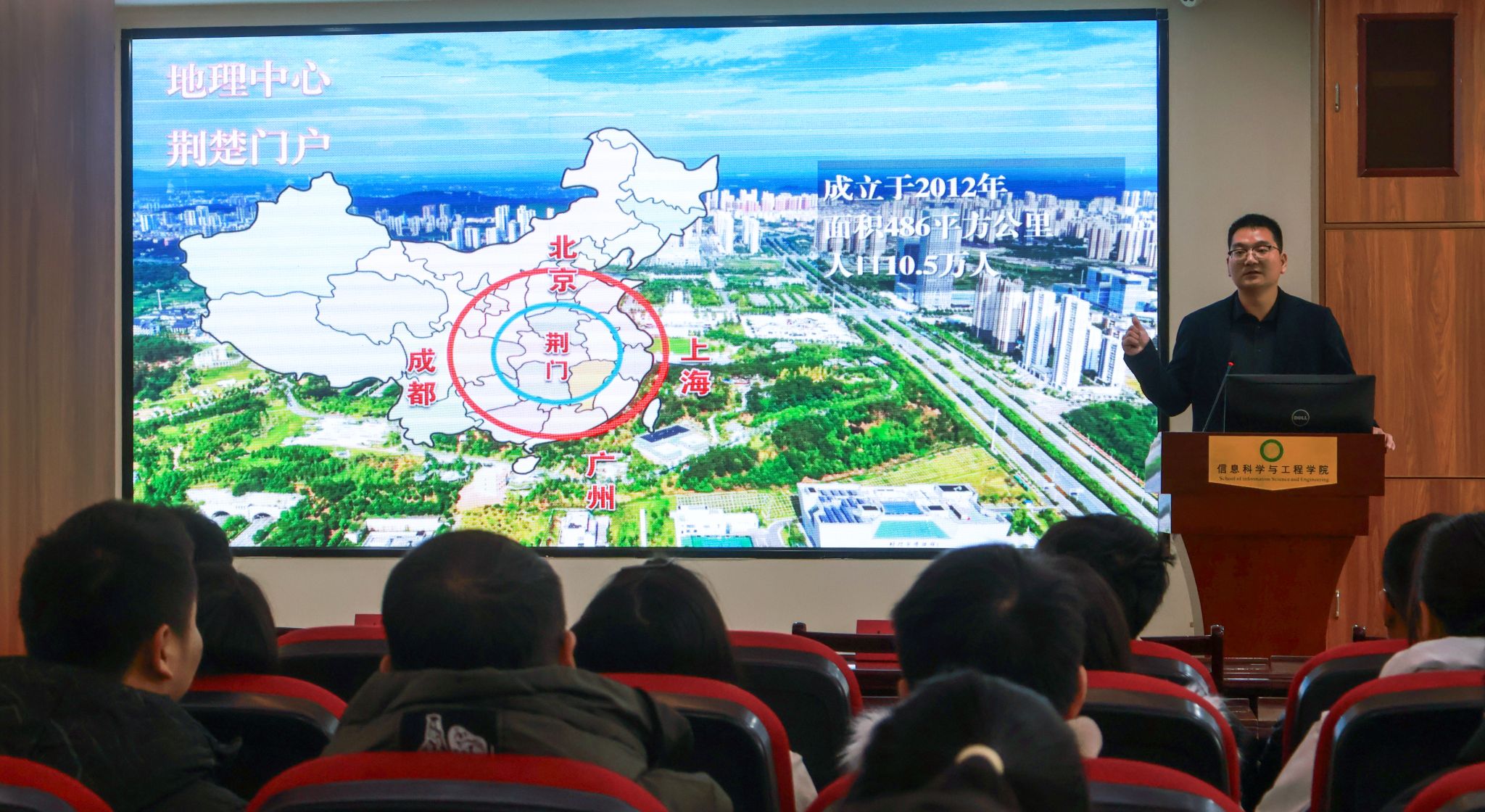 我校青山校區(qū)教十樓401報告廳里,李鄒洋在宣講中表示,新區(qū)正打造涵蓋研發(fā)、制造、測試的全產(chǎn)業(yè)鏈條,與我校人工智能學(xué)院的機(jī)器人、工業(yè)互聯(lián)網(wǎng)等研究方向深度契合。交通優(yōu)勢則為新區(qū)發(fā)展按下“快進(jìn)鍵”。隨著沿江高鐵(滬渝蓉高鐵)與呼南高鐵十字交匯,荊門至武漢通勤時間縮短至42分鐘,至宜昌僅需20分鐘?!拔磥韽母哞F站到辦公區(qū)僅需10分鐘,新老城區(qū)通過一條主干道無縫銜接?!崩钹u洋說。