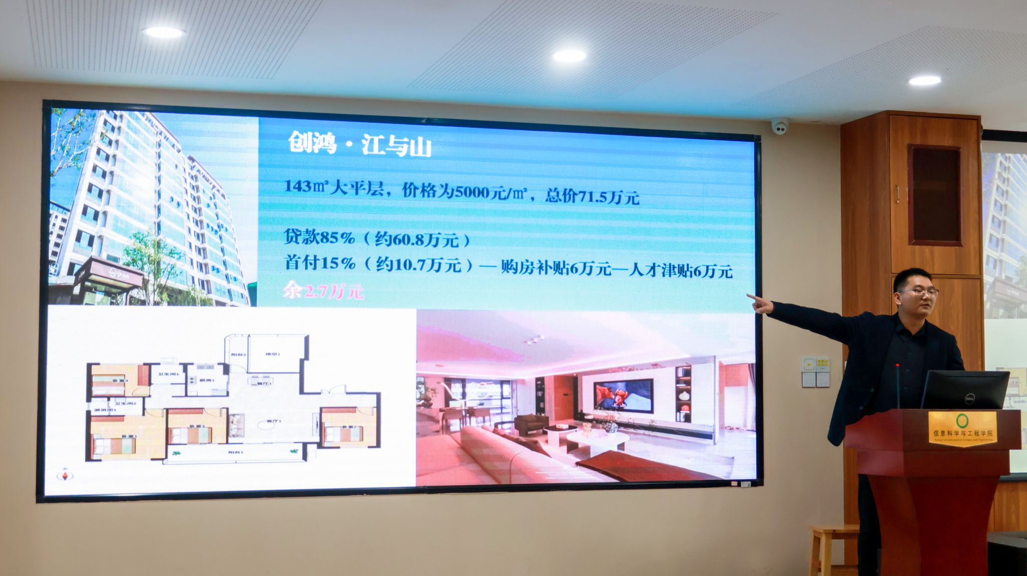 “中心城區(qū)新房均價僅4500元每平方米,月供2000元公積金即可覆蓋。一套170平方米住房總價約72萬元,首付低至4.27萬元,真正實現(xiàn)‘安家自由’。”3月4日,荊門市漳河新區(qū)黨群工作部部長、我校校友李鄒洋,向永利集團(tuán)88304官網(wǎng)數(shù)名碩士生、博士生介紹該地區(qū)人才引進(jìn)政策時說。